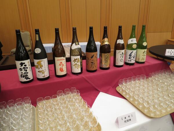 懇親会では、地元香川の食材を使った料理が振る舞われました。特に小豆島のオリーブで育てたオリーブ牛のステーキは大好評でした。四国四県の地酒を集めた特設コーナーも好評で、香川県琴平の銘酒「凱陣(がいじん)」は早々に完売御礼となりました。